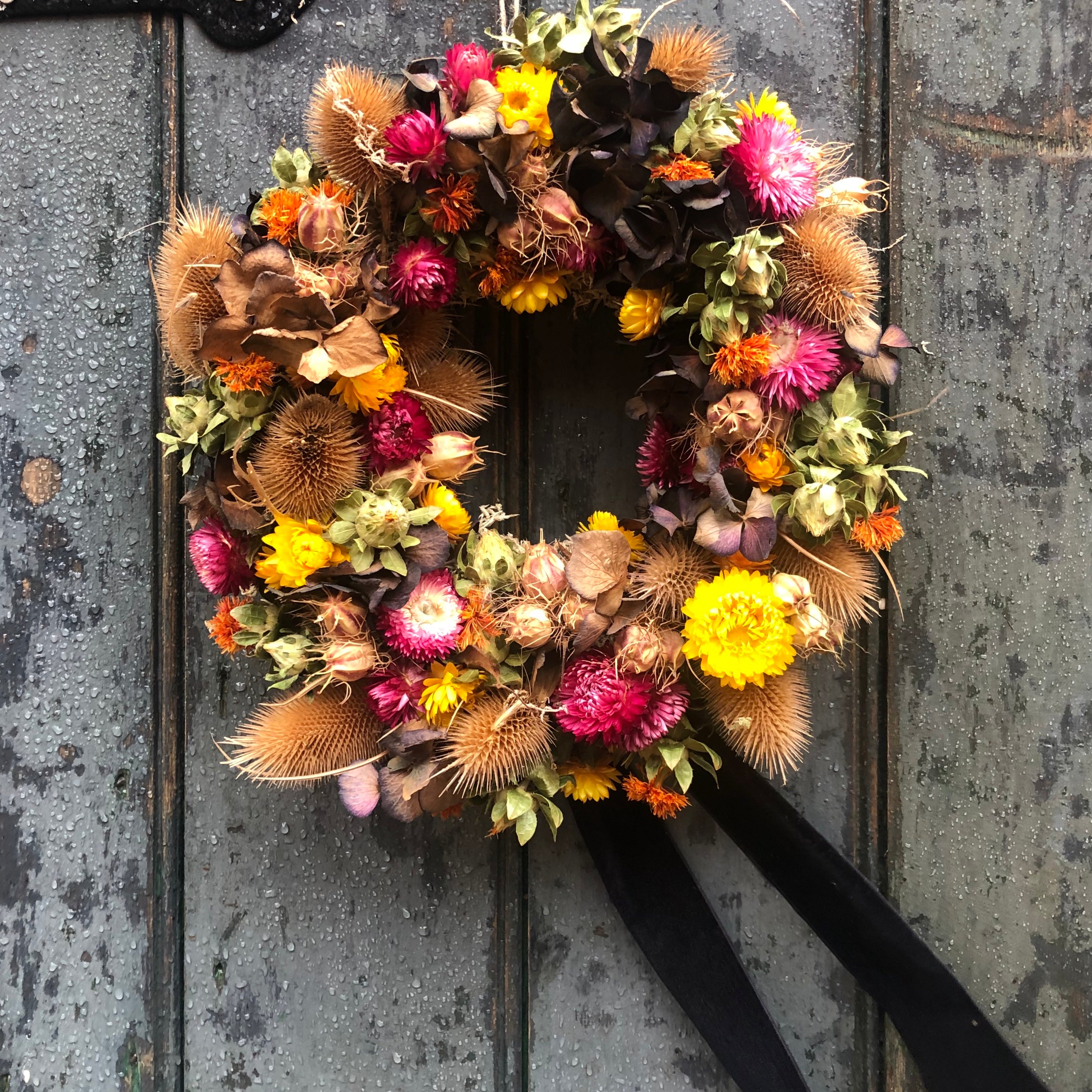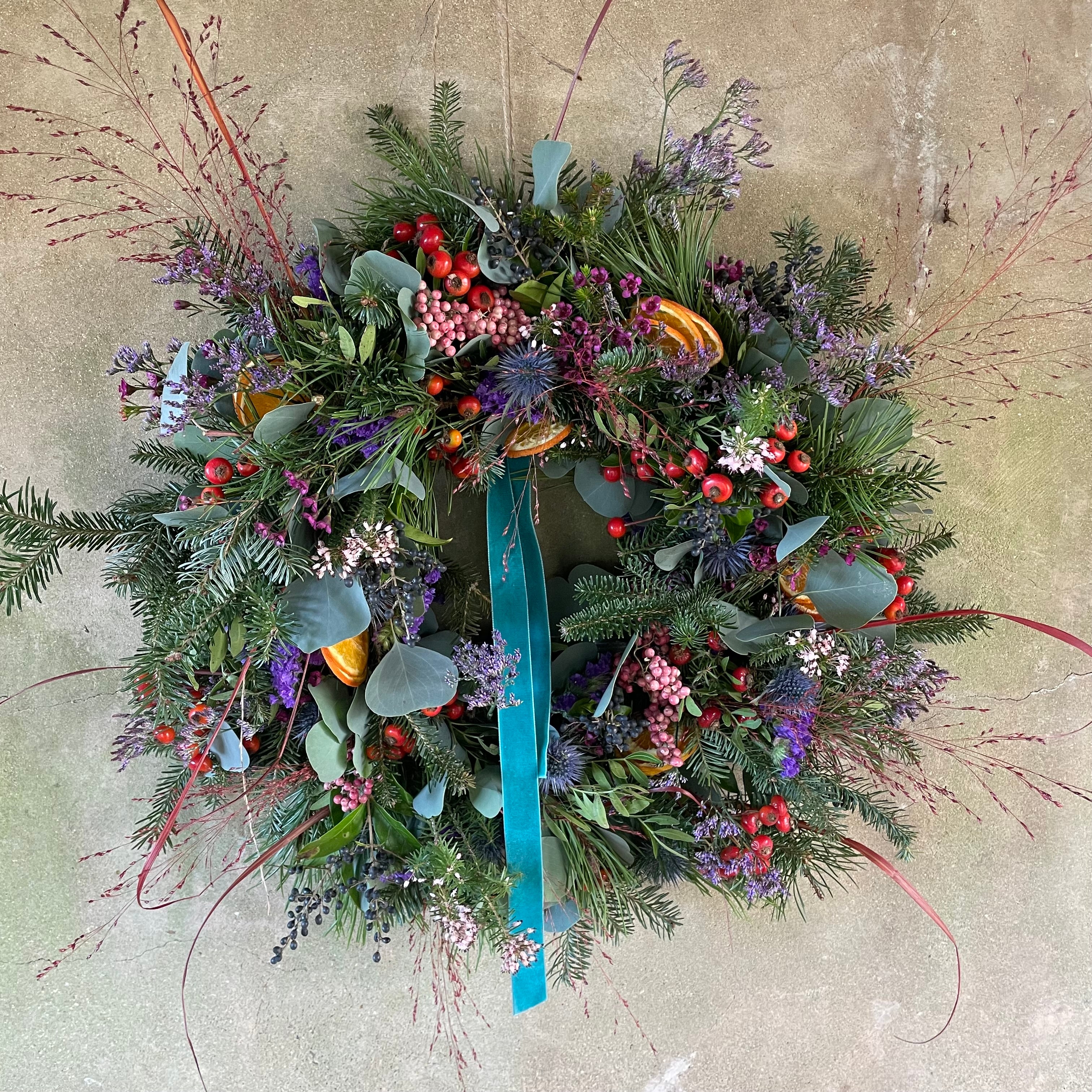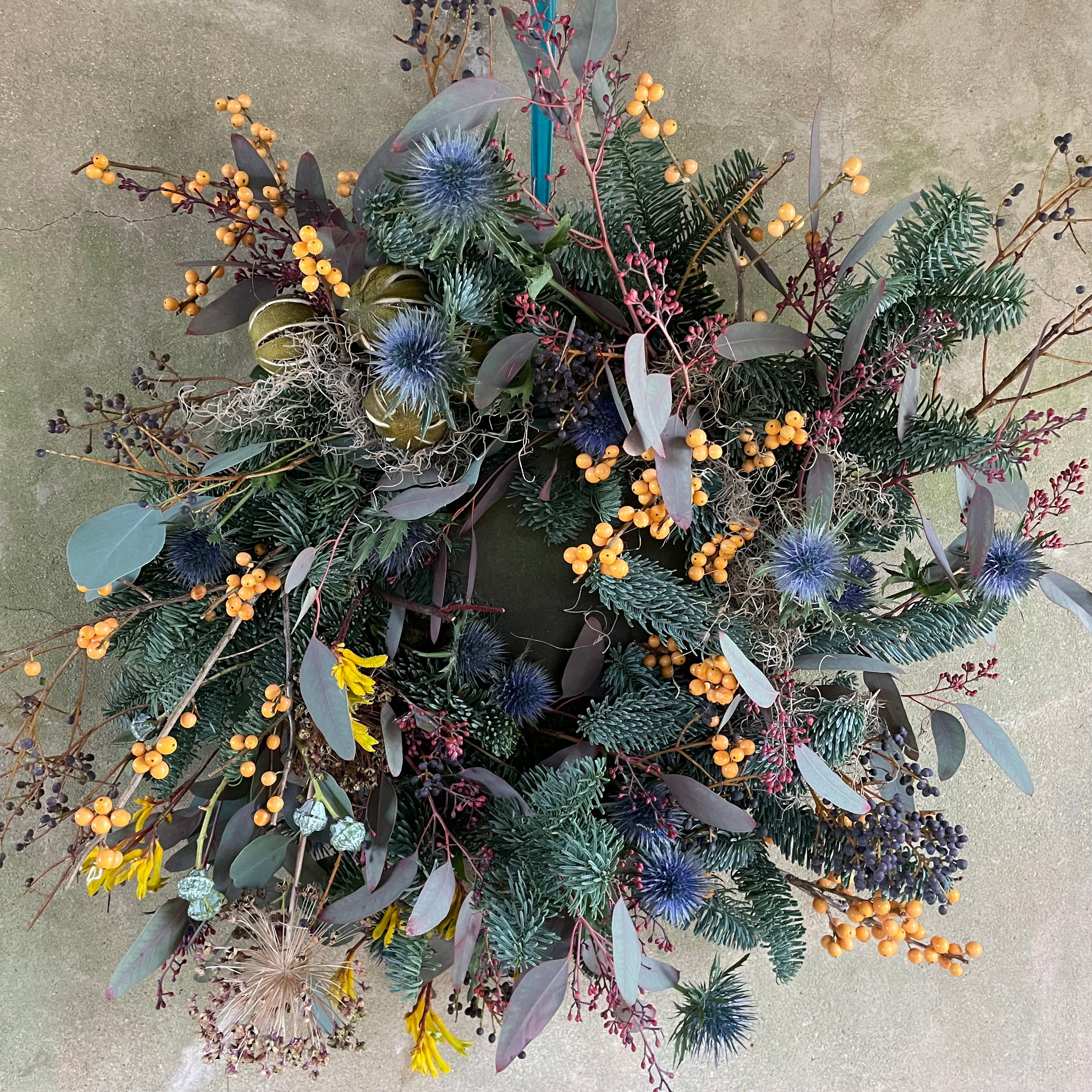 Get creative and design your own door decorations at one of my seasonal wreath making workshops or simply choose one of my made to order options. Every element of your wreath will be 100% home compostable.