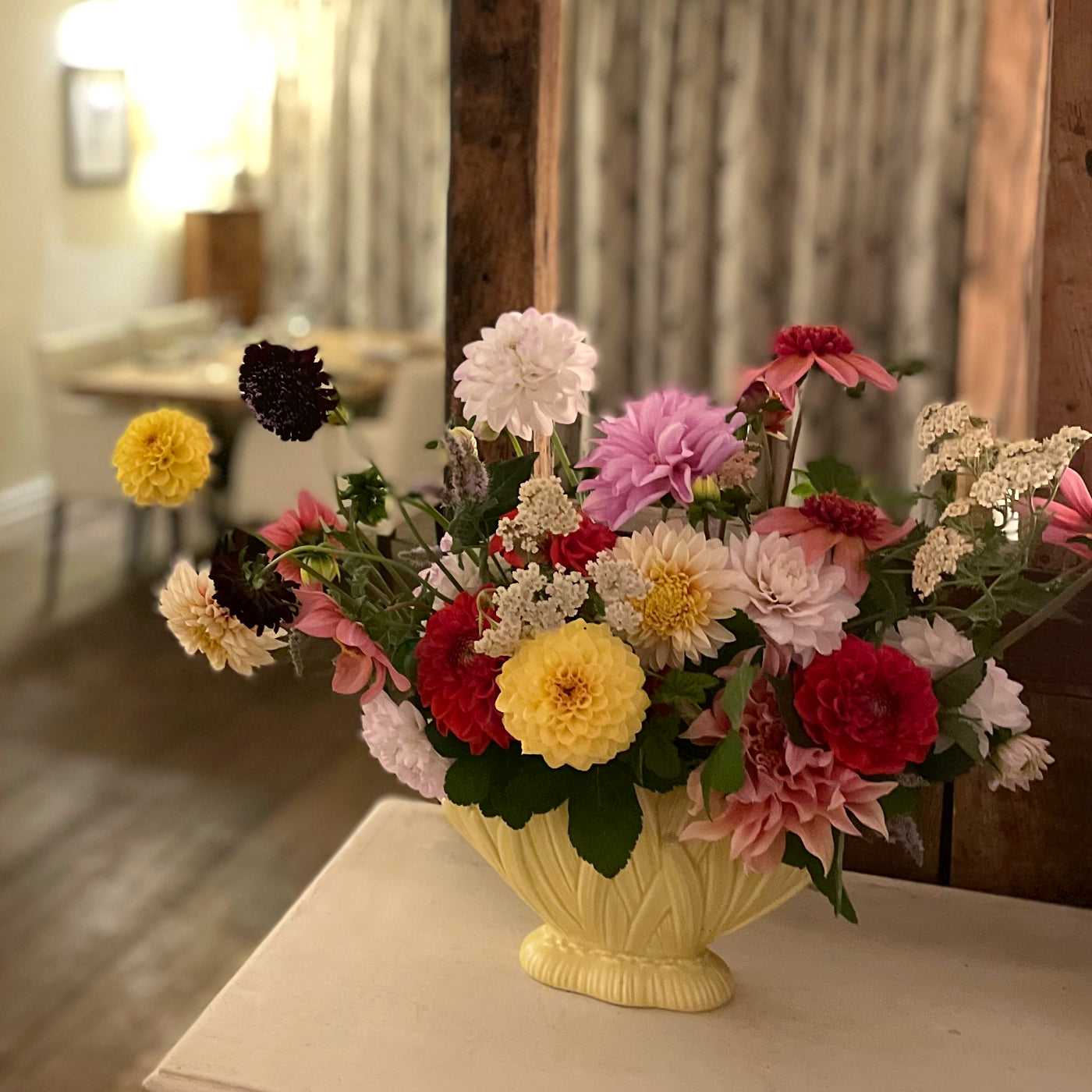 What truly sets Leanne's creations apart is her commitment to using only the freshest, homegrown, and indigenous blooms. Each arrangement is a celebration, with every stem and petal carefully nurtured on her own grounds. The vibrant colors and intricate textures of her locally-sourced flowers add an unmistakable authenticity and charm to our restaurant's decor and fits in with our ethos of seasonality.